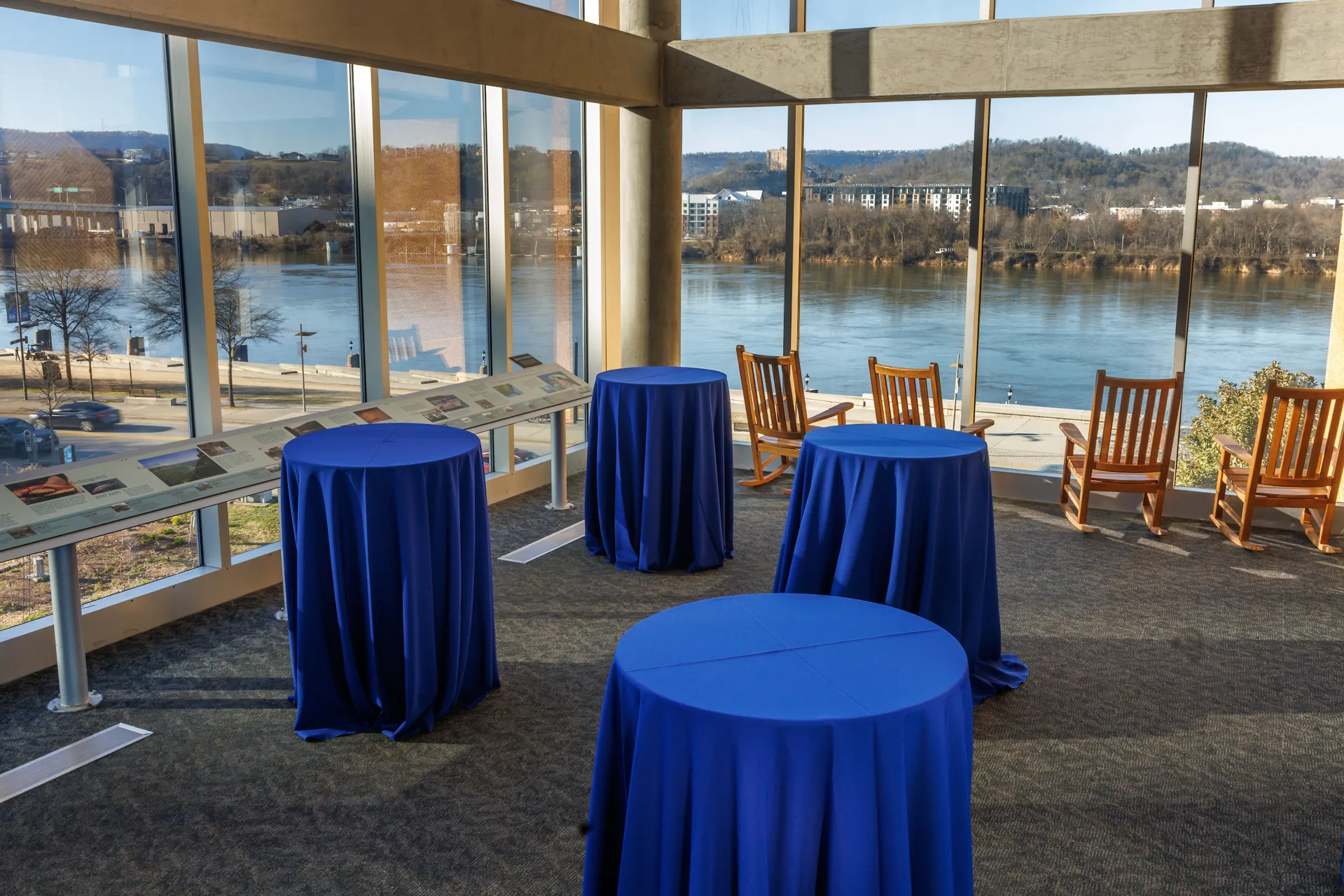 The Ocean Journey building features spectacular views of the Tennessee River. With food and drink in hand, your guests will enjoy penguins, sharks, jellyfish, stingrays, and much more. This building accommodates 50 for a seated dinner and more than 200 reception style.