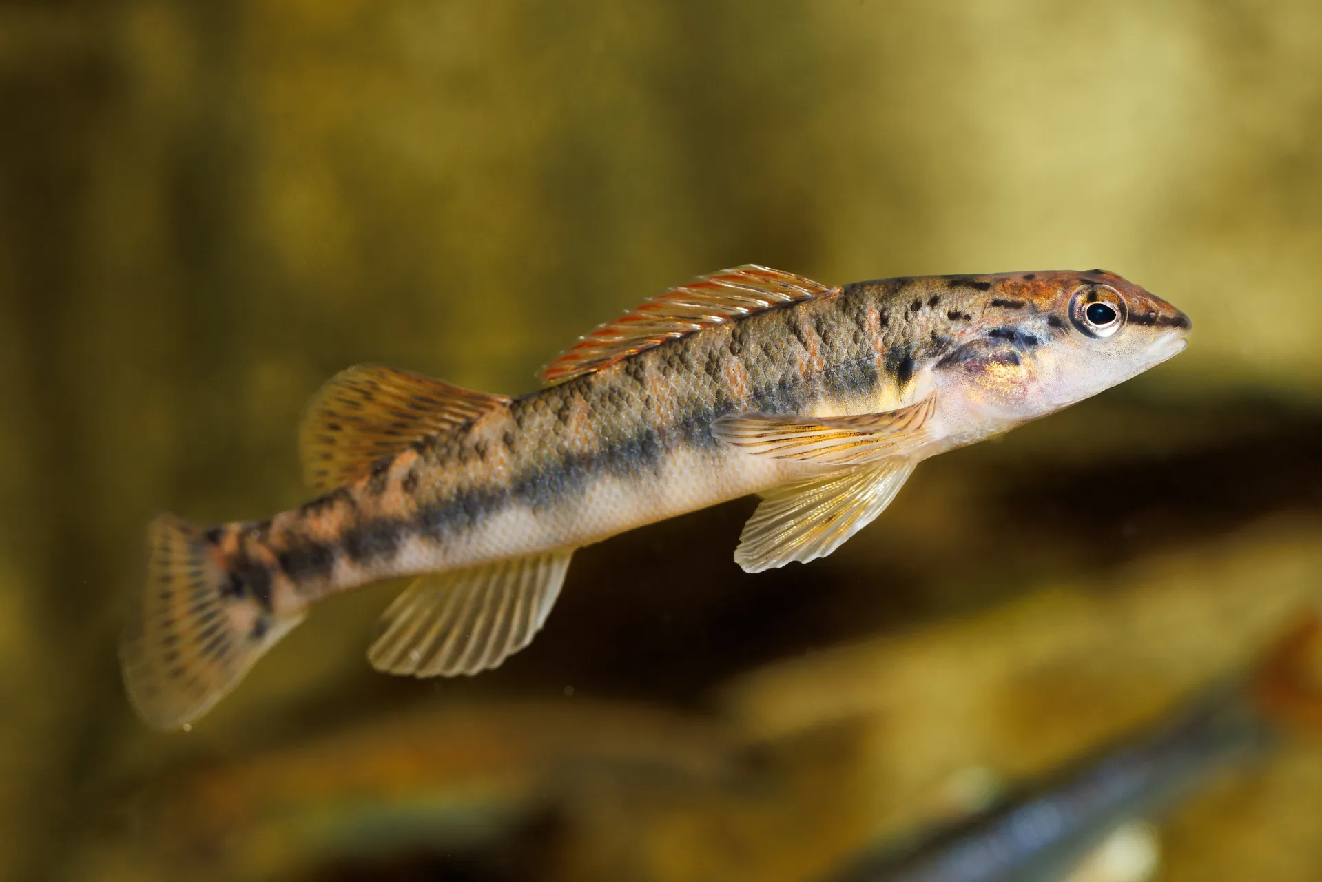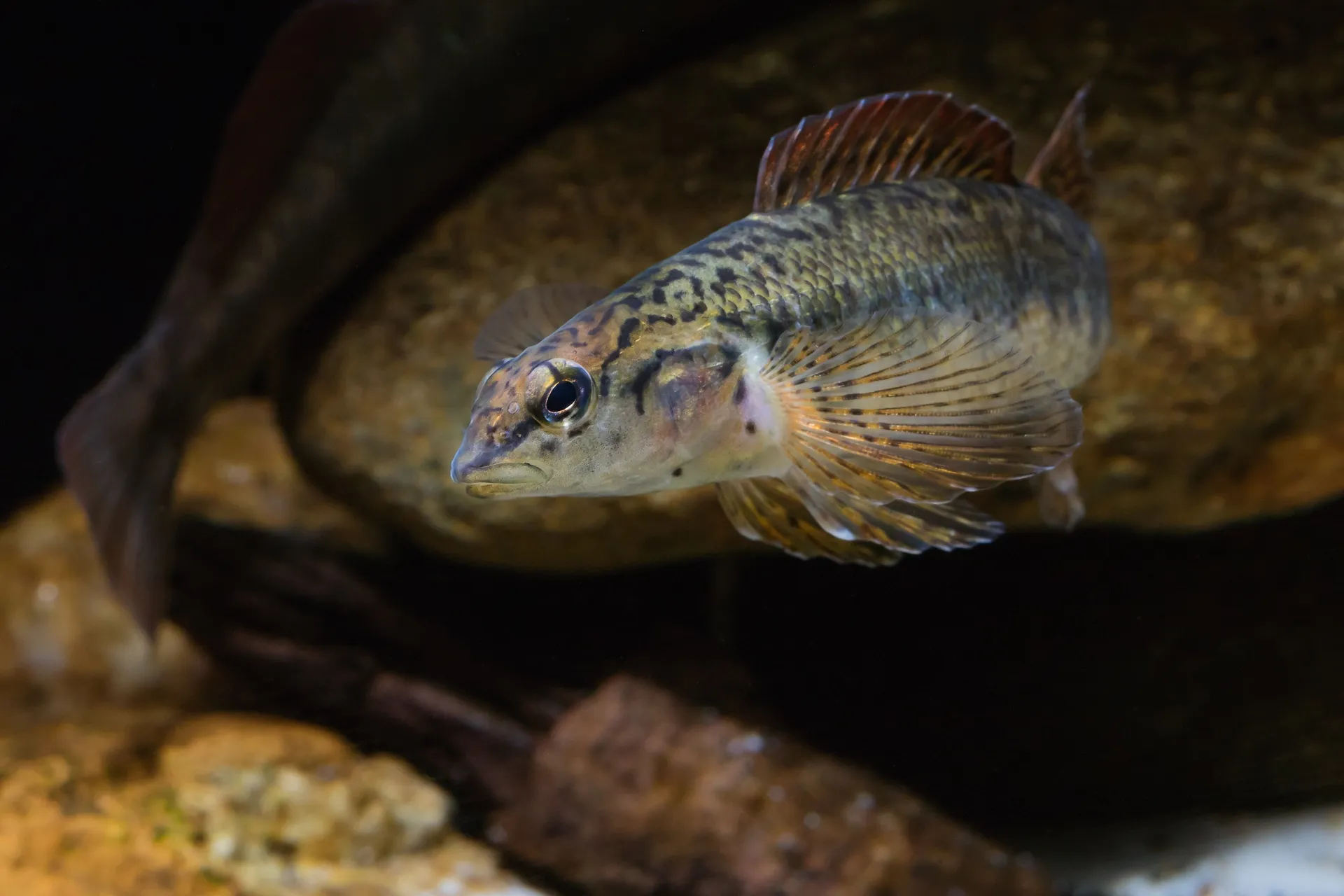 As the common name suggests, breeding male Bronze Darters develop a golden belly with bright orange dorsal fins. While most darters are found on stream bottoms, members of the genus Percina tend to be found higher in the water column because they retain a swim bladder.
