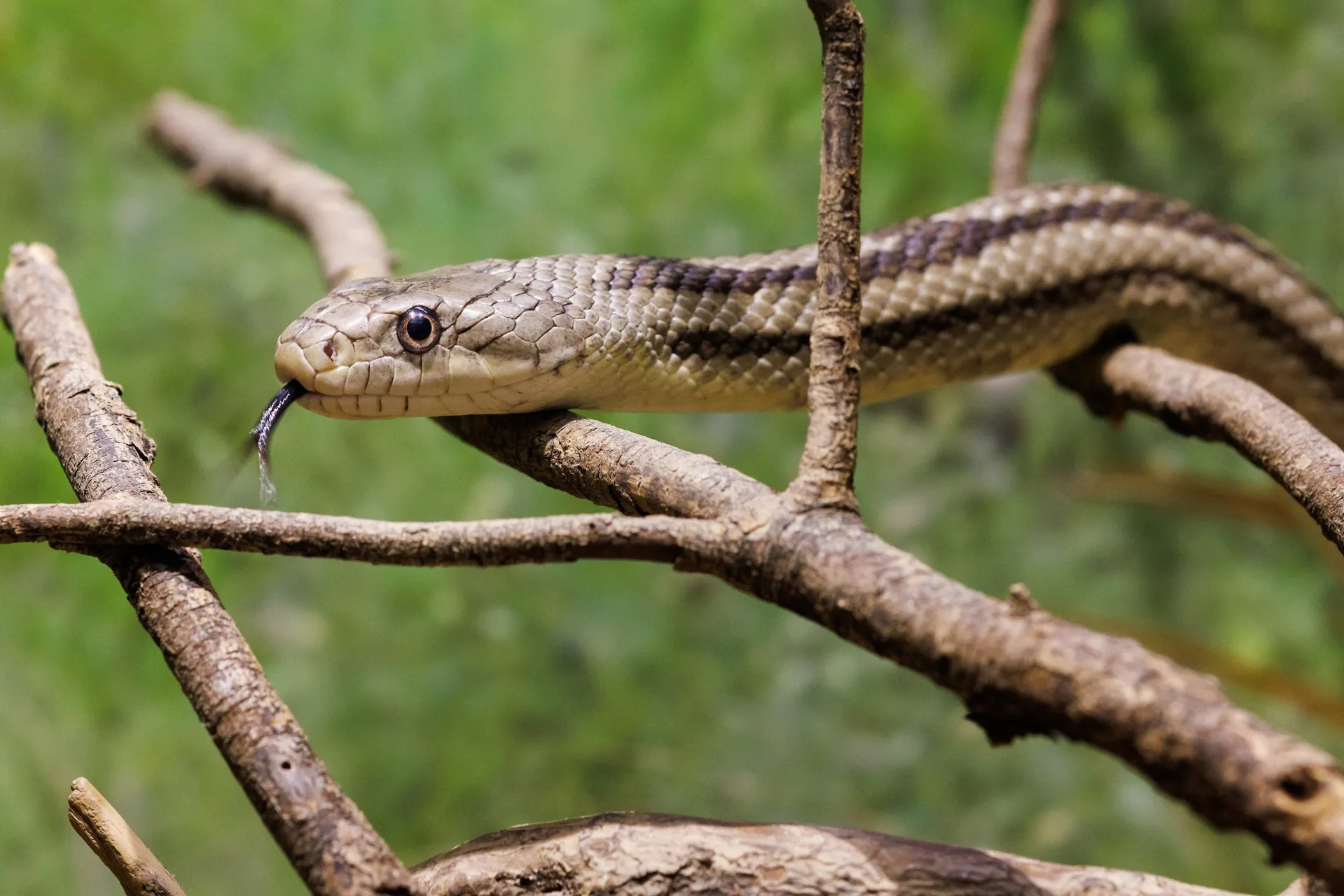 The harmless rat snake is one of the most common and beneficial snakes in the United States. It gets its name from the fact that it is frequently found on farms and in barns feeding on rats and mice. If you remove or kill a rat snake from these areas, the rodent population can increase quickly, posing a threat to human health and to food and grain supplies.