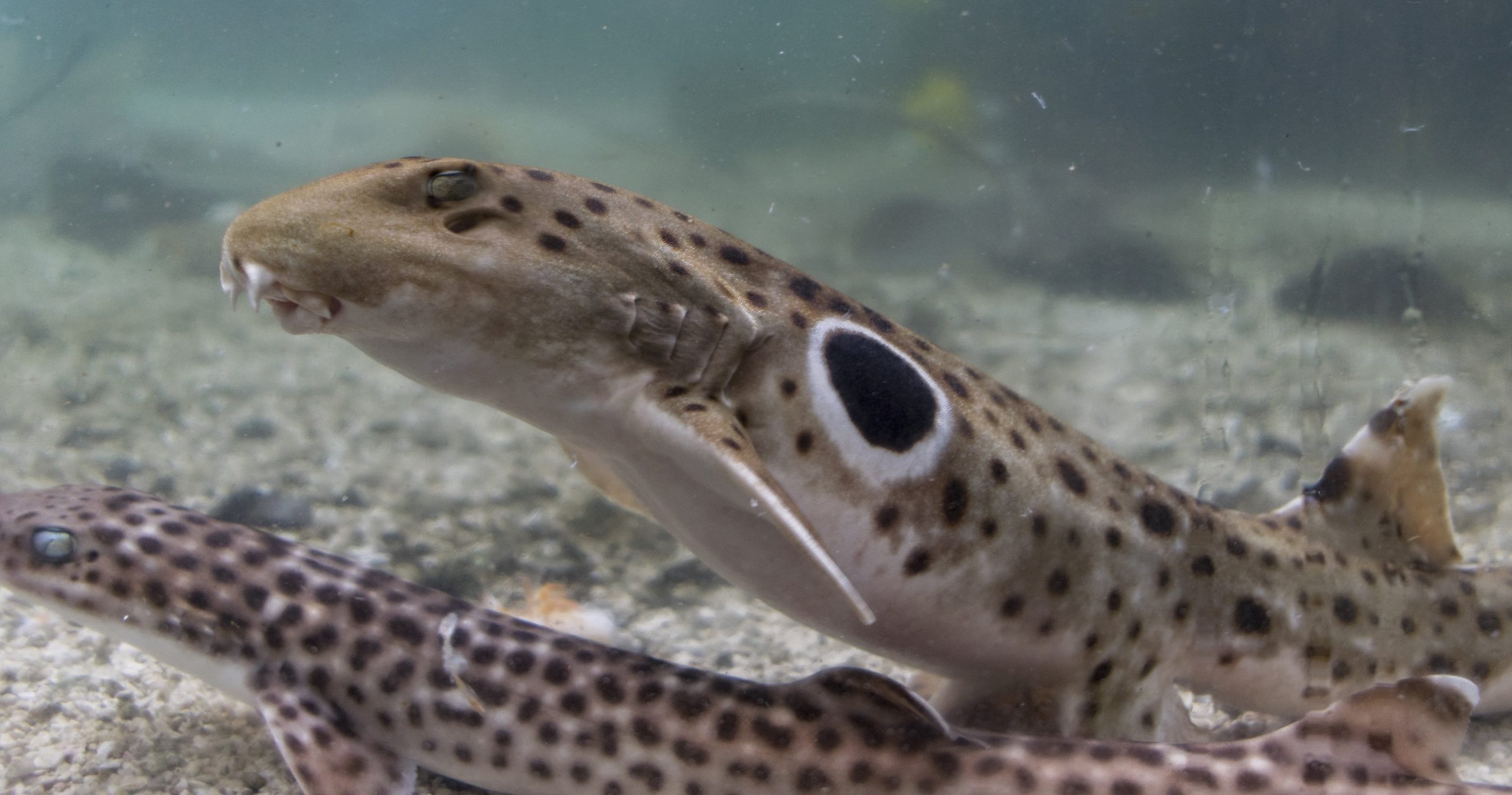 Epaulette sharks have nocturnal habits and frequent shallow water on coral reefs or in tidal pools. Like other sharks, female epaulette sharks do not provide care for their young. Epaulette sharks lay an average of four eggs over a month in tough, leathery egg cases. In approximately 130 days, the young sharks hatch. They are totally independent and ready to fend for themselves. Rather than swim, epaulette sharks "walk" by wriggling their bodies and pushing with their paired fins.