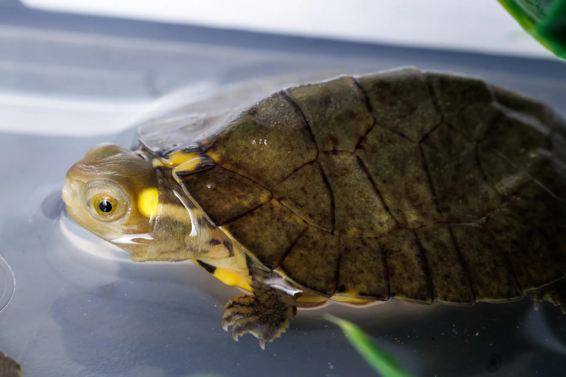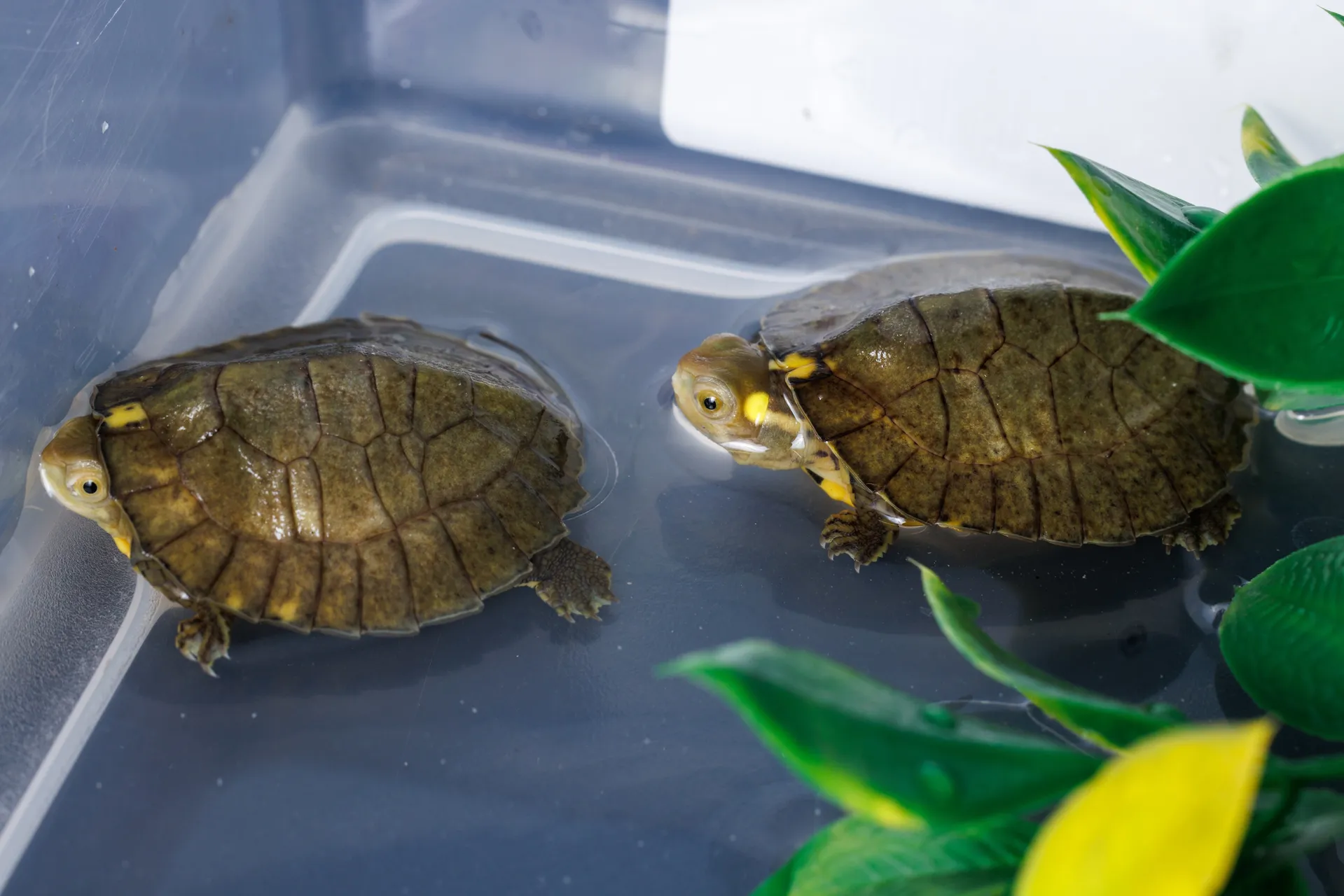 Despite the name, these turtles do not have four eyes. Instead, both males and females have eye spots or ocelli on the tops of their heads. These markings are different for males and females. This species is part of the Tennessee Aquarium’s Asian Turtle Breeding Program and has successfully reproduced here.