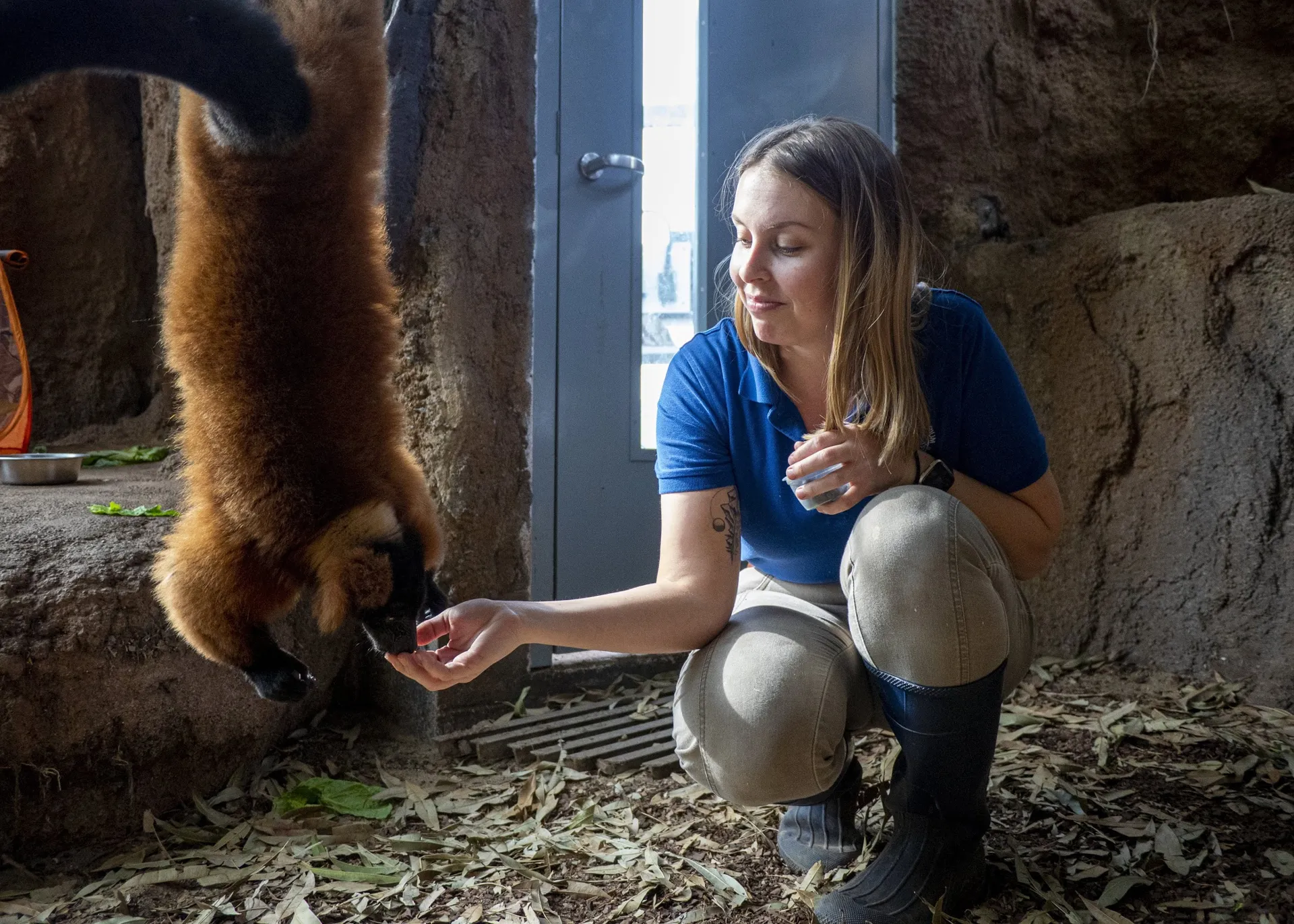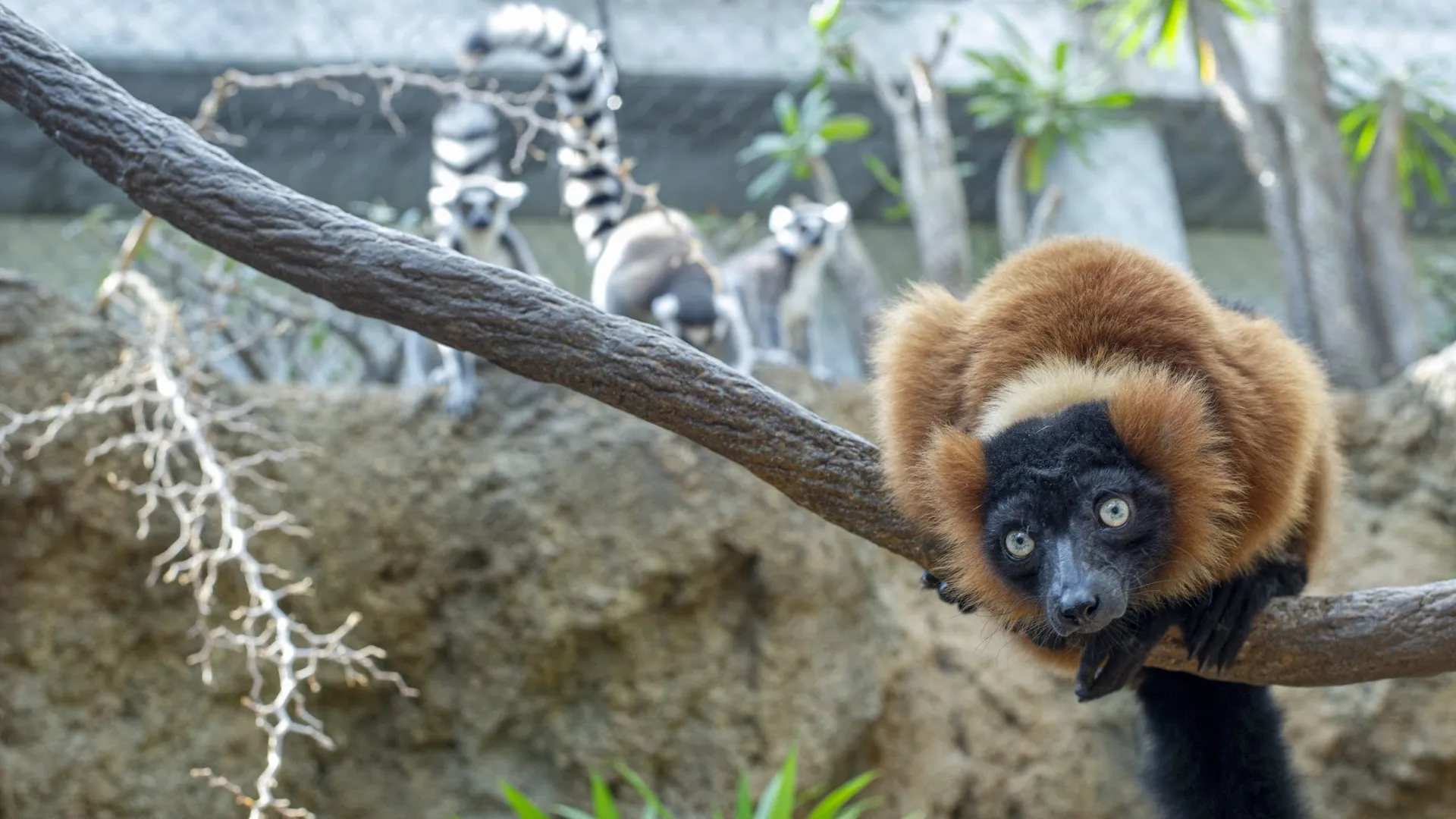 It is the most frugivorous (fruit-eating) of all the lemur species. So much so that this species is a very important pollinator inside its range and is technically considered the largest pollinator on Earth! Feeding on the nectar of tubular flowers, pollen remains on their muzzle and is transported to other flowers.