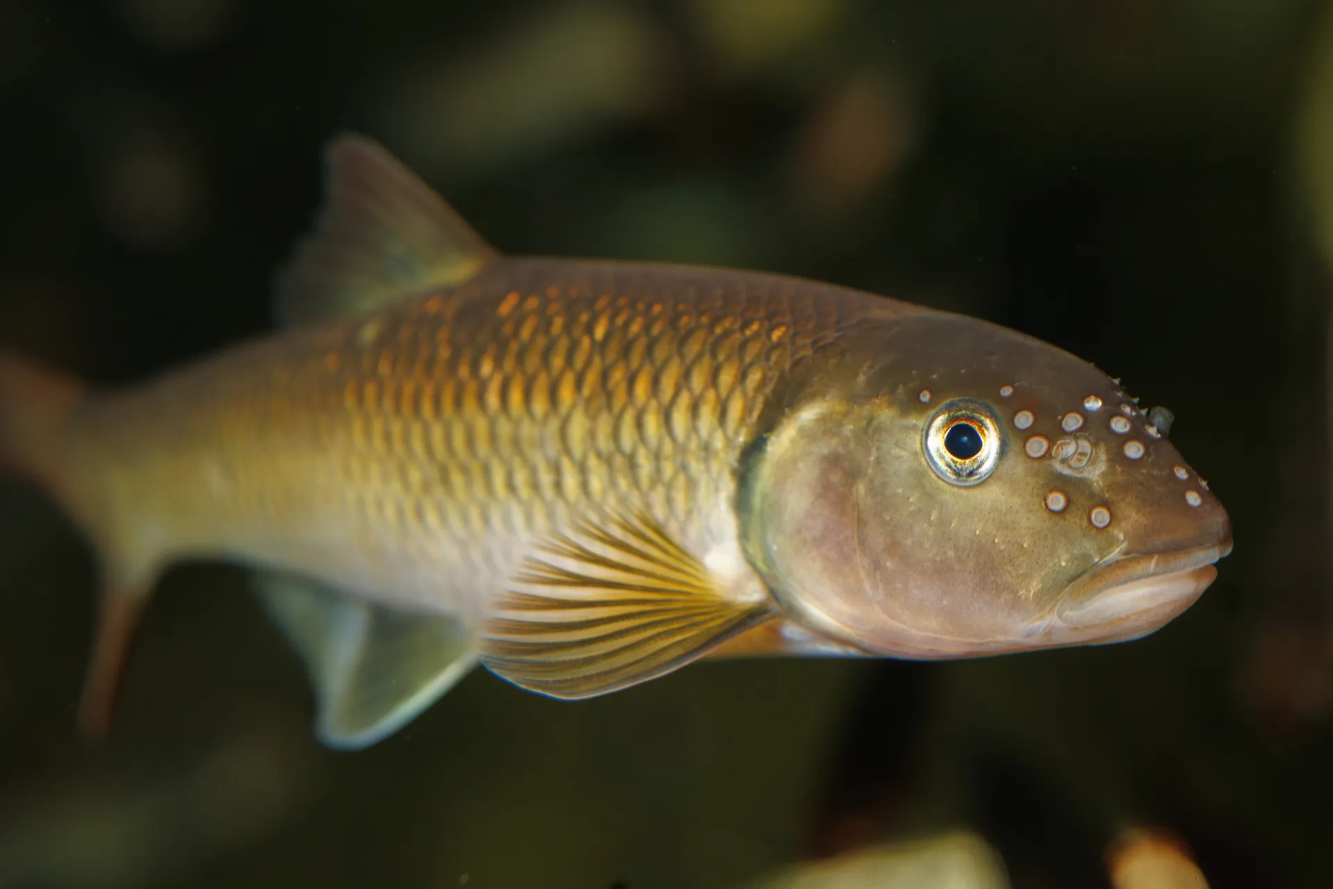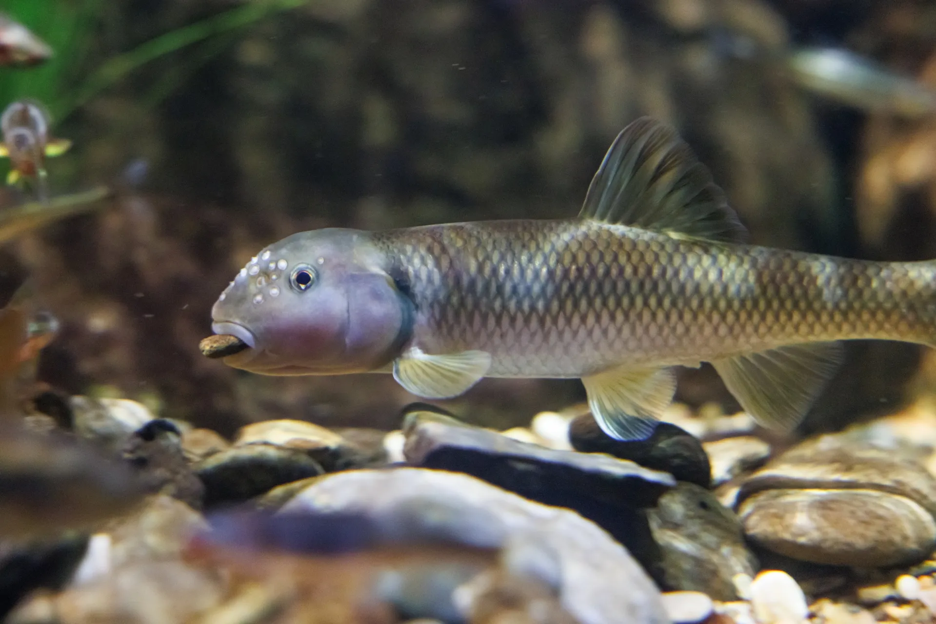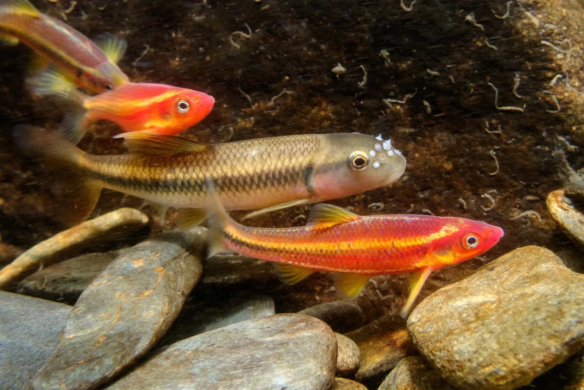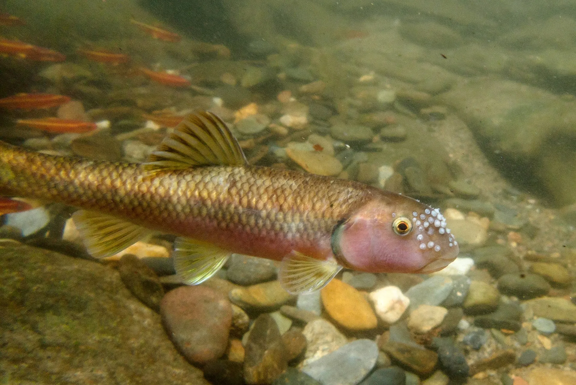 As their common name suggests, River Chubs live in runs and pools of streams to medium rivers over rocky substrate. Like other members of the genus Nocomis, breeding male River Chubs build nests by moving gravel with their mouth one rock at a time. Other species of minnows will also lay their eggs over these nests.