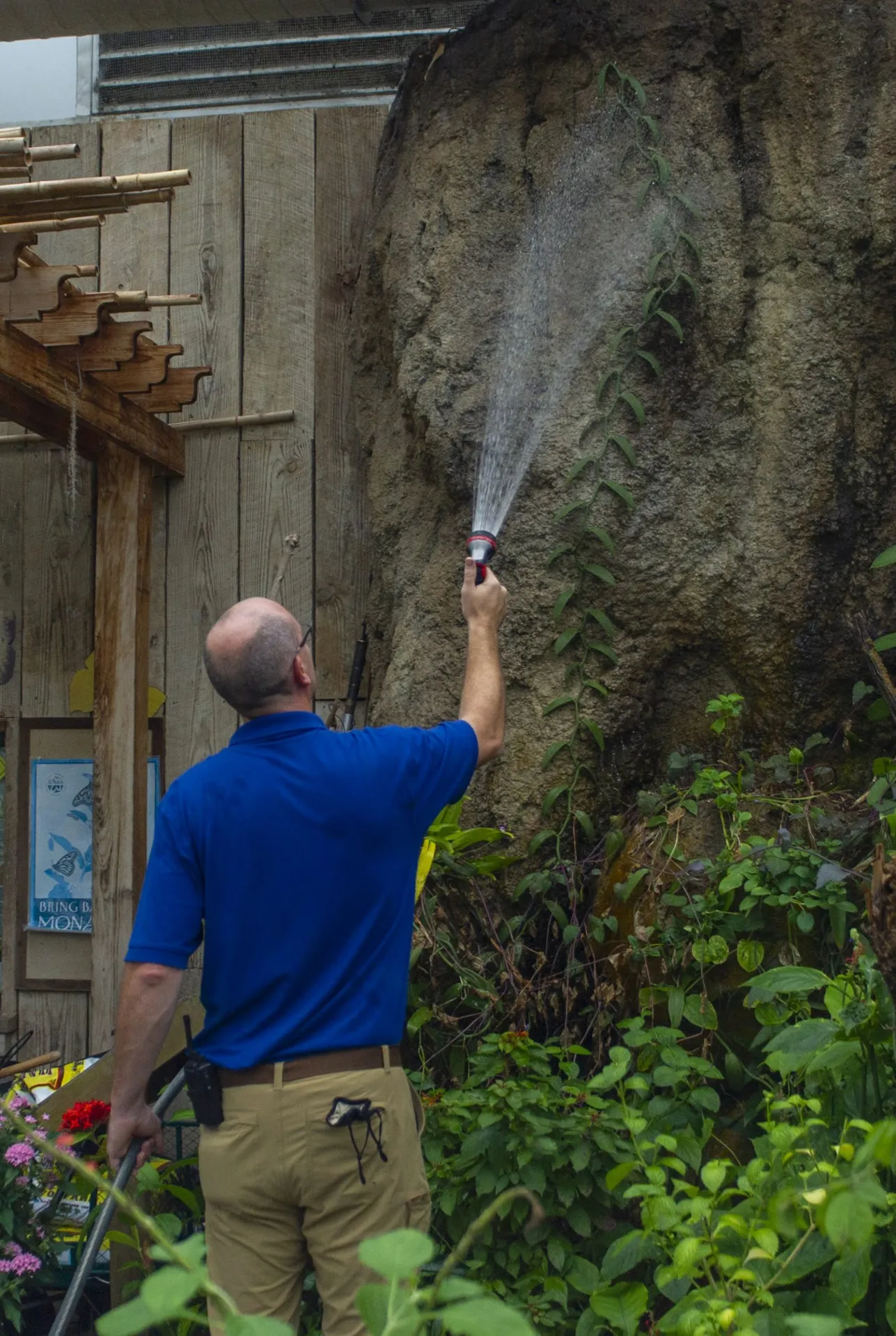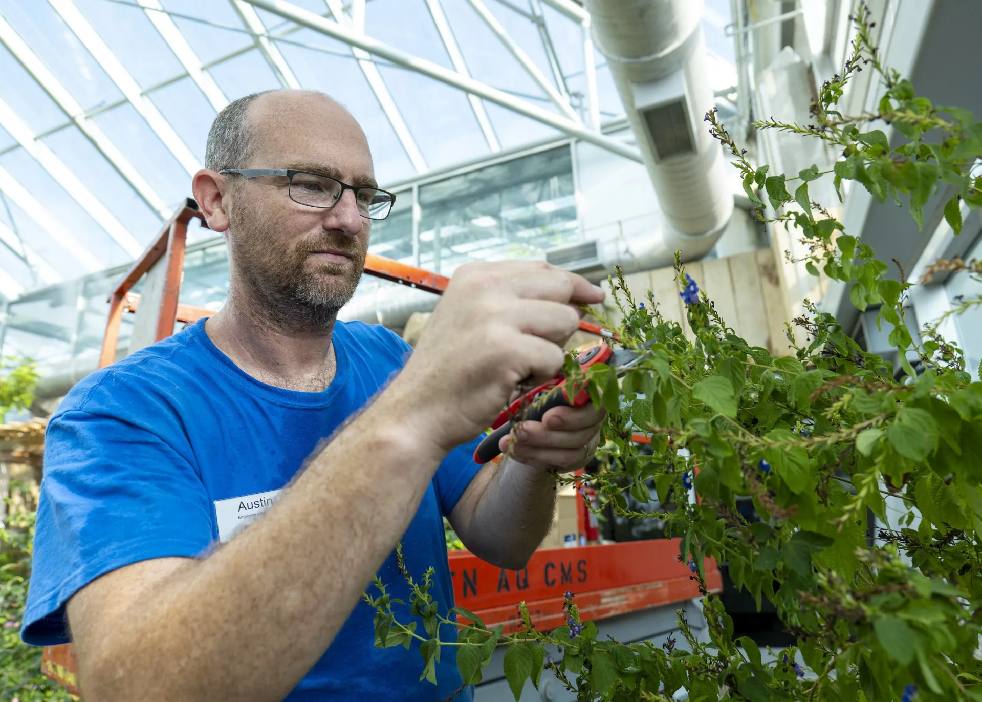 The rest of his day could be divided between a wide range of activities, from helping to set the stage for a new exhibit to tending the IMAX 3D Theater’s garden to working in the greenhouses under the Aquarium’s iconic glass peaks.