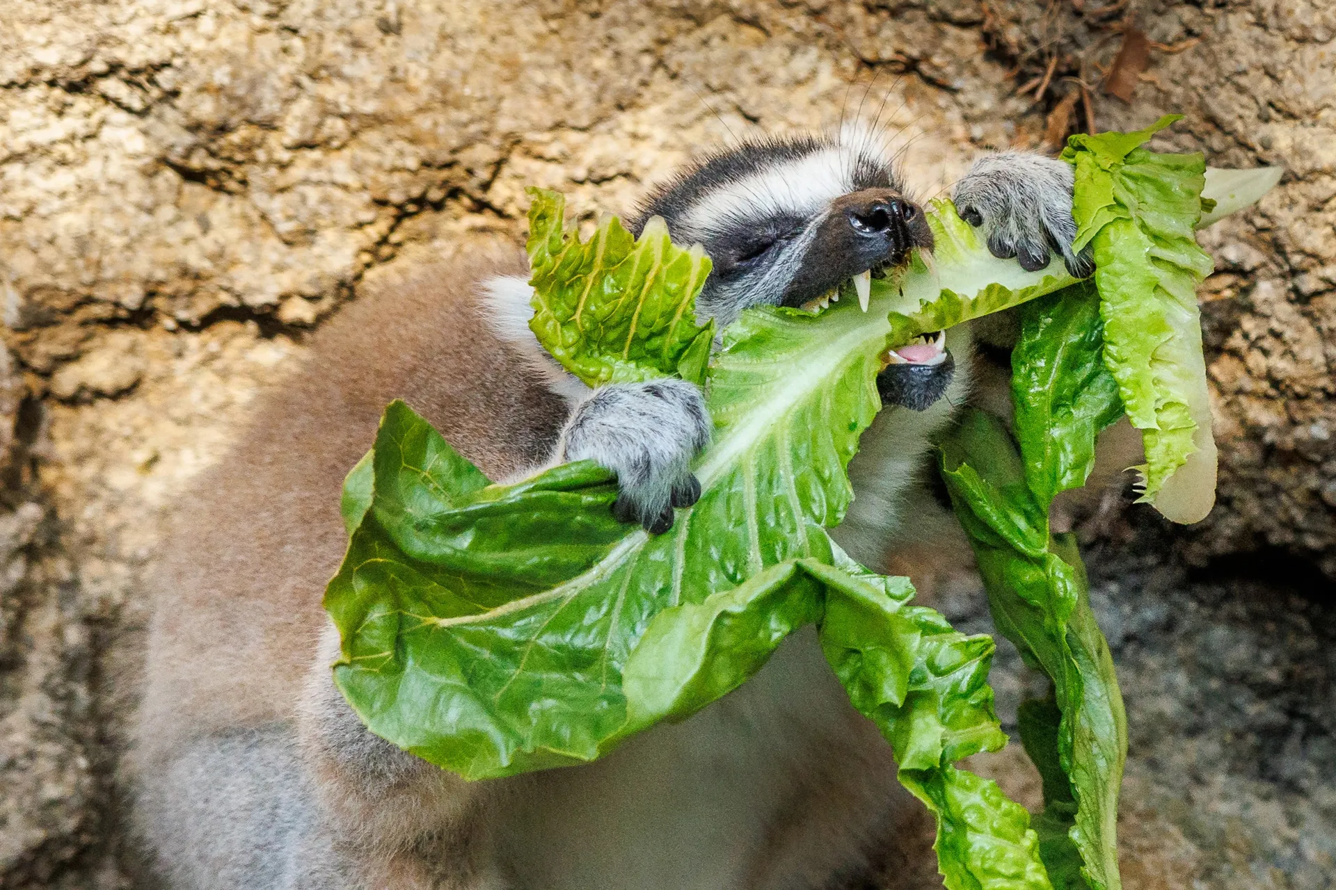 The Aquarium’s Ring-tailed, Red-ruffed and Red-collared Brown Lemurs enjoy a wide-ranging diet with a variety of fresh fruits and vegetables, including as much romaine lettuce as they could want every day.