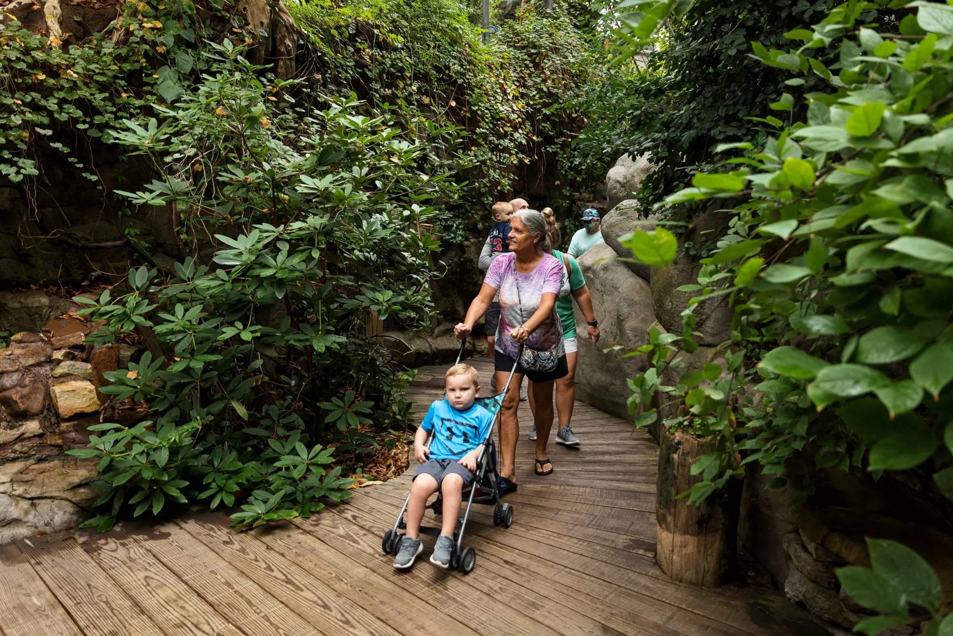 Above, a yellow-brown leaf releases its hold from the canopy of a Striped Maple and falls gently to a wooden bridge that traverses this section of forest. But this woodland isn’t cradling the slope of an Appalachian foothill or valley. It’s under the iconic glass peaked roof of the Aquarium’s River Journey building.