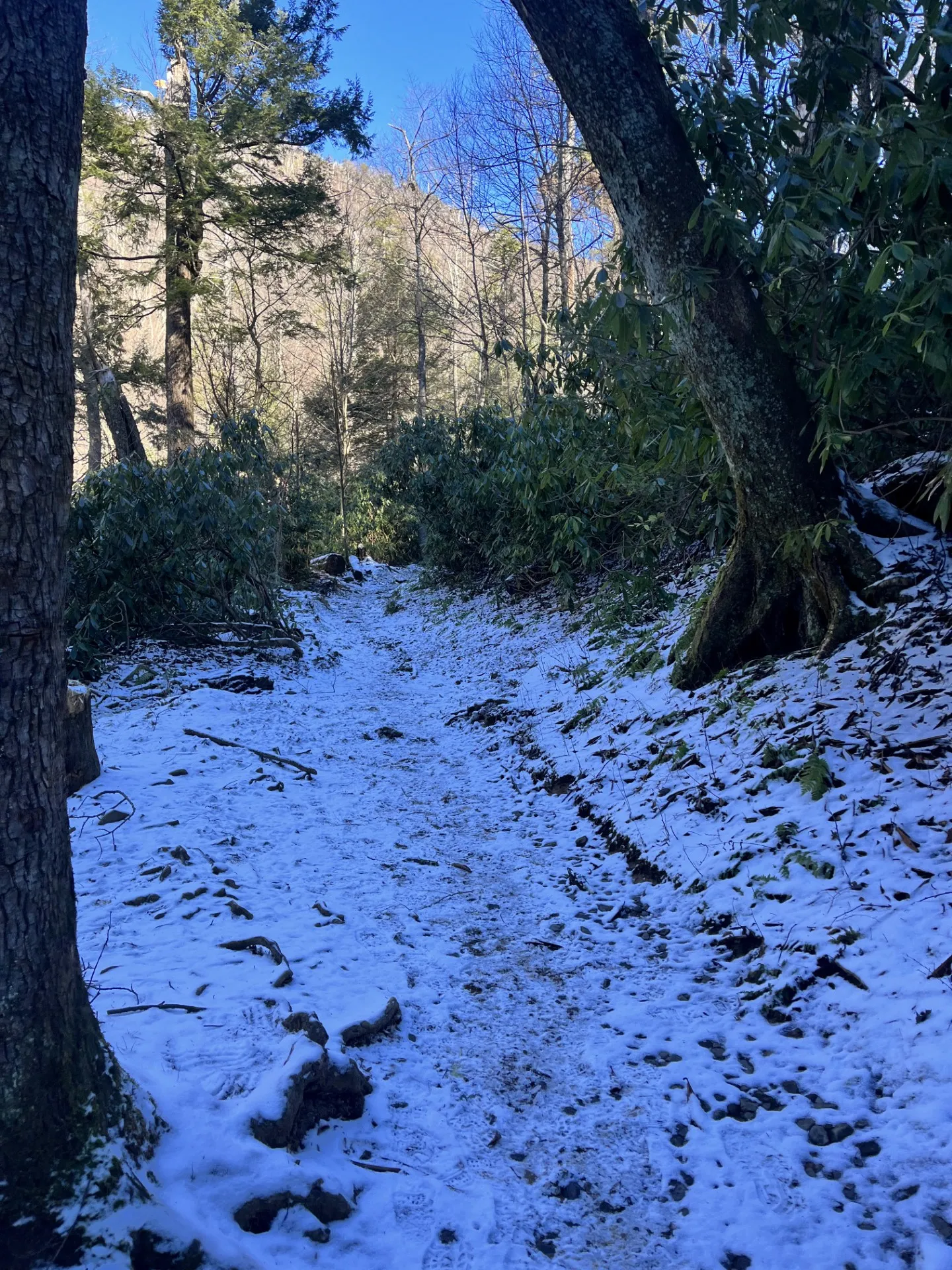 On a January hike to Rainbow Falls in the Great Smoky Mountains, temperature and trail conditions changed drastically throughout my trek.