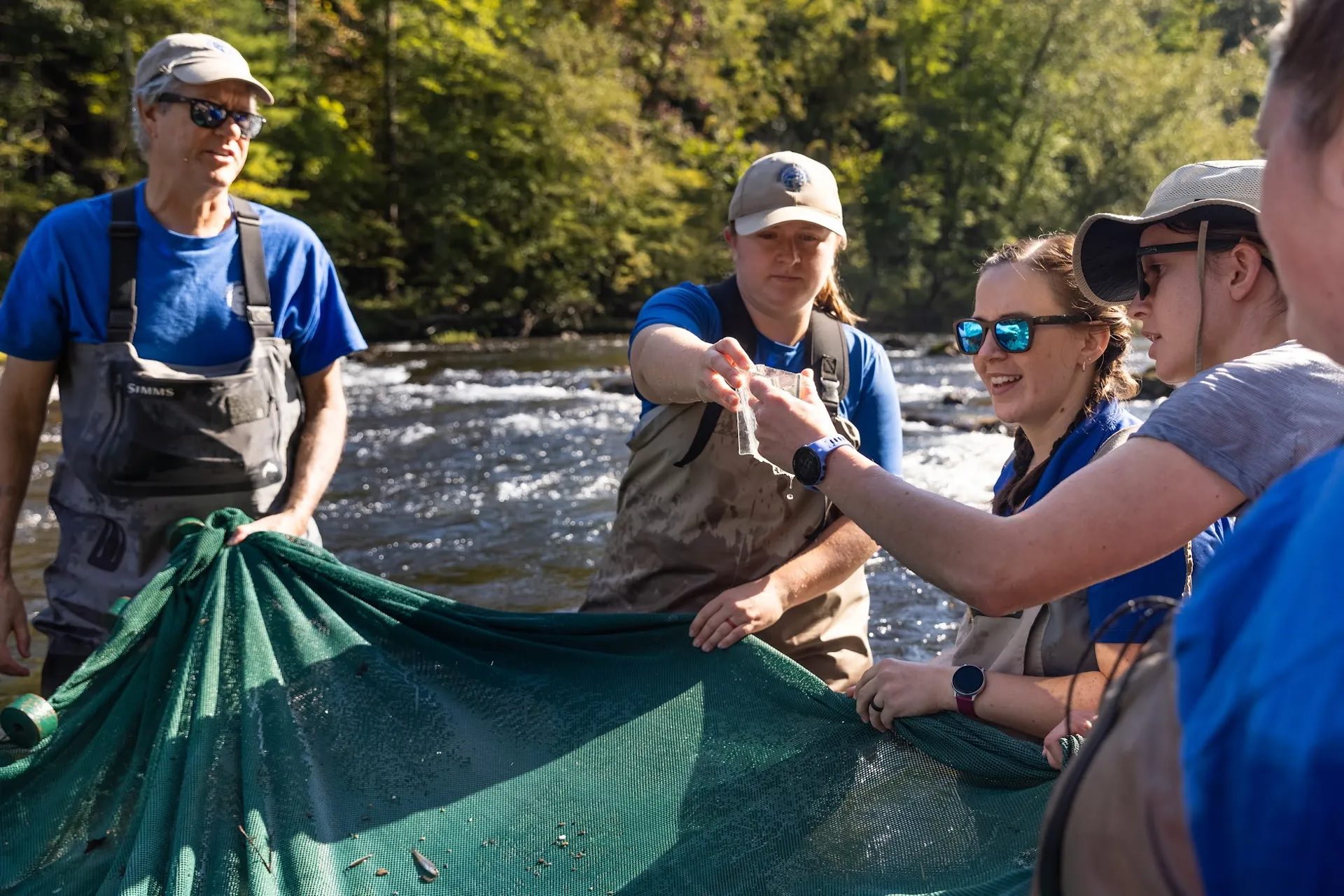 Recently, a team of scientists from the Tennessee Aquarium Conservation Institute donned wetsuits and snorkels to collect Tangerine Darters from the Tellico River near Tellico Plains, Tennessee.
