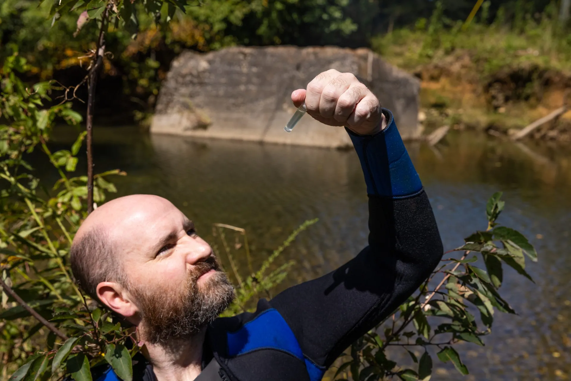 On a late summer morning under a cloudless cornflower sky, a troupe of scientists from the Tennessee Aquarium and Thrive Regional Partnership squeeze into wetsuits on the shoulder of a rural North Georgian highway in preparation for a decidedly unusual hunt.
