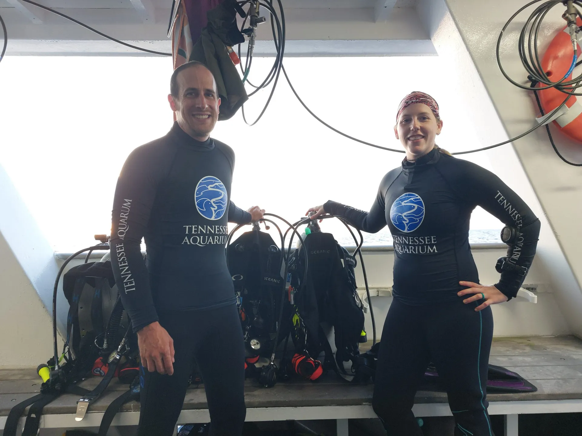 Kyle McPheeters, a fellow senior aquarist, and I were selected for this unique opportunity. Before we could set off, we had to tackle a mountain of prep work for the journey: booking flights, hotels and rental cars; updating our SCUBA certifications; practicing with the spears and other gear required for the expedition. This all took place in a rush last August.