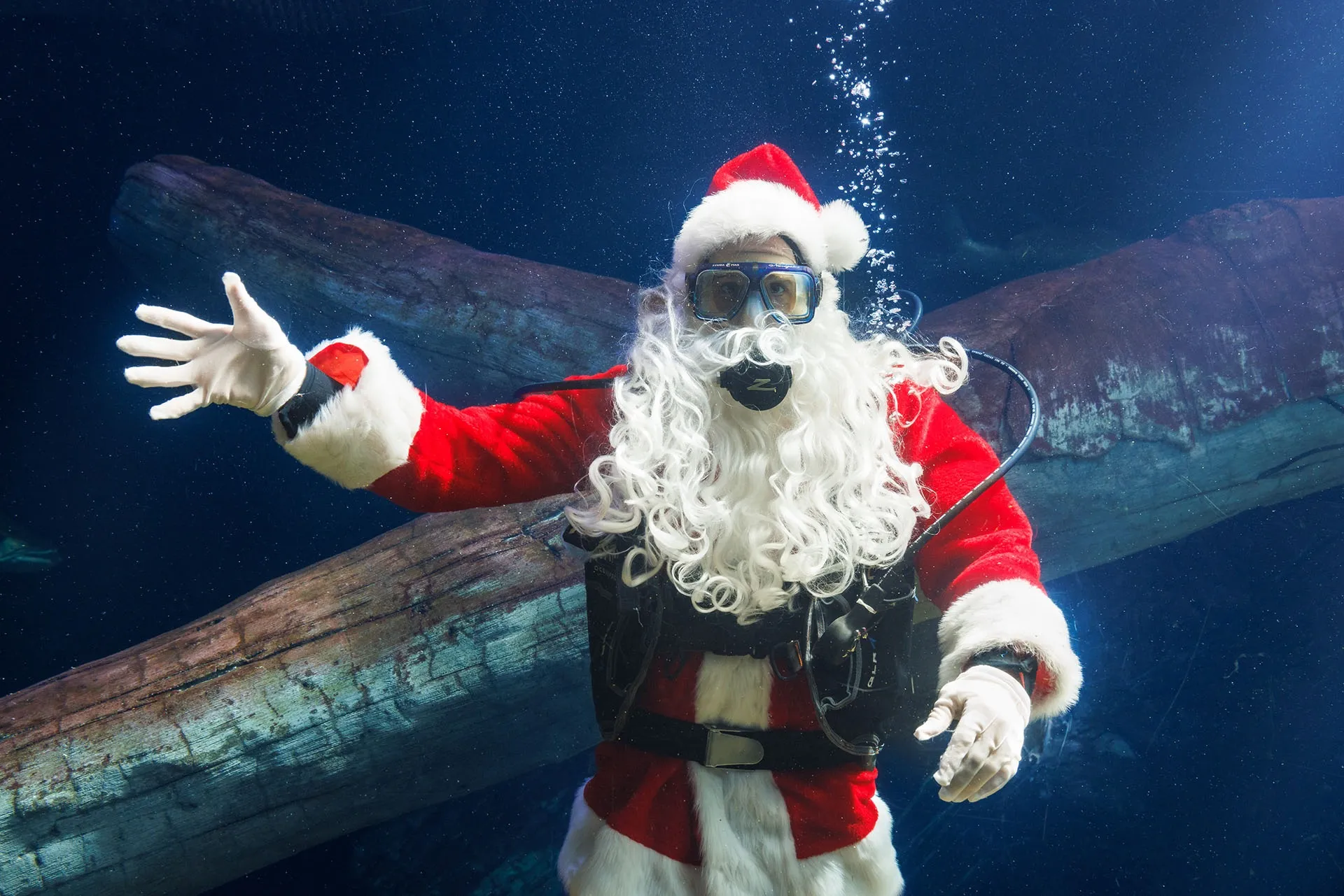 Santa is once again slipping on his fins and donning a self-contained underwater breathing apparatus — more commonly known as SCUBA — for weekend dips in the River Journey building’s freshwater exhibits. As he floats among enormous fishes in River Giants and weaves past a variety of native species in the Tennessee River gallery, he’ll be sure to wave hello and listen to Christmas requests from passing guests.