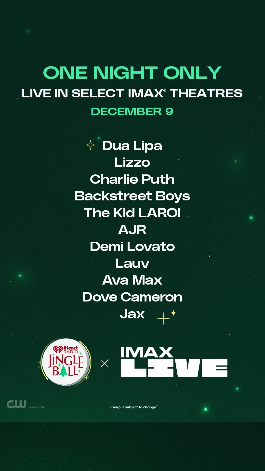 Thanks to its state-of-the-art IMAX with Laser audio/video system, Chattanooga’s largest screen is also the best place for Scenic City music fans to enjoy this assemblage of the biggest names in music. Viewed on the theater’s six-story screen while surrounded by 12 channels of thunderous, precision audio, attendees will enjoy the Jingle Ball at a scale that replicates the feel of being on stage with their favorite artists.
