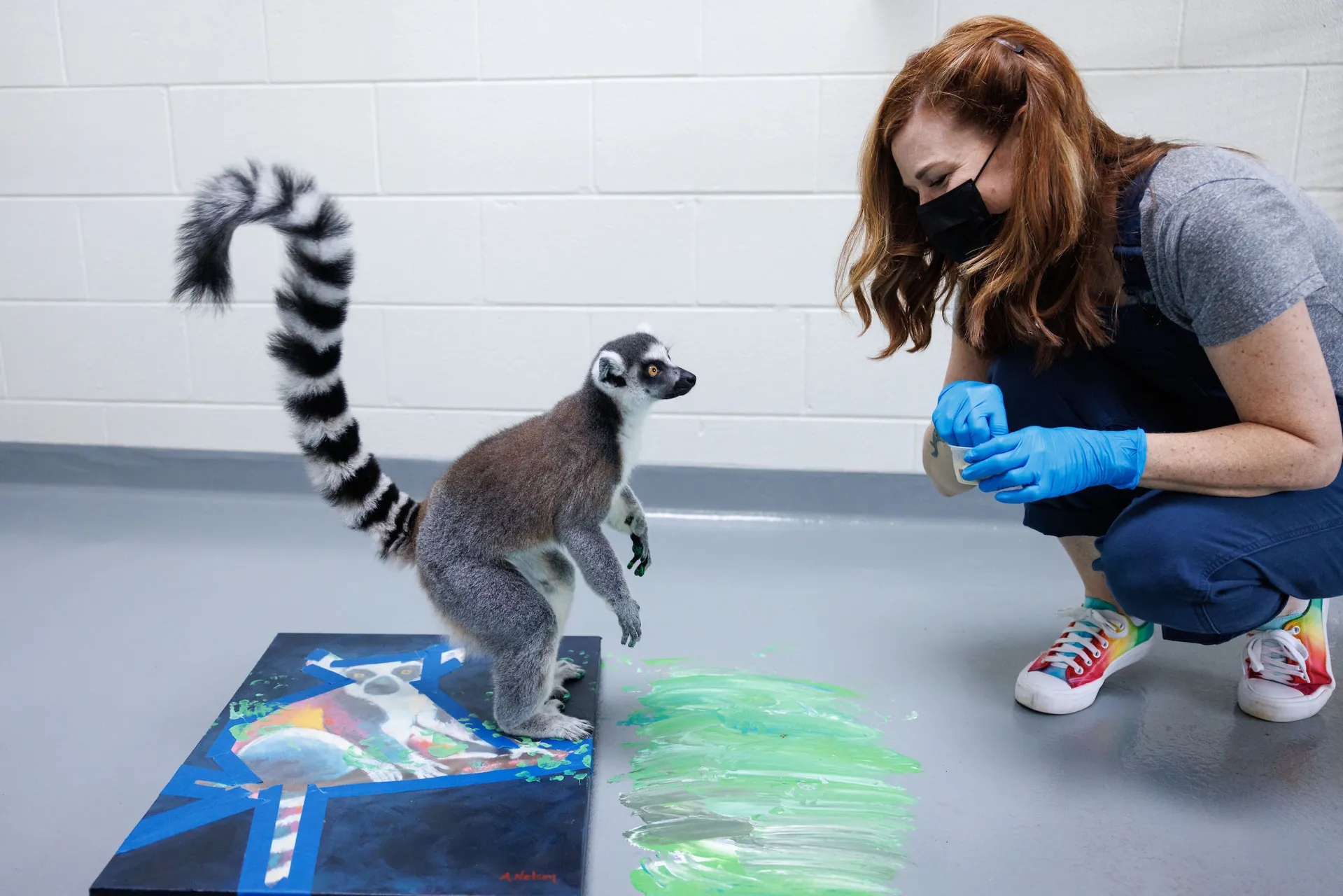 For a more “human” touch, the auction will also include contributions by Atlanta-based artist and social media star Andrea Nelson, who lent her considerable talents to the auction for the second year. Two collaborative artworks created by Nelson with Ring-tailed Lemur Rolo and Red-ruffed Lemur Lyra are up for grabs this year.
