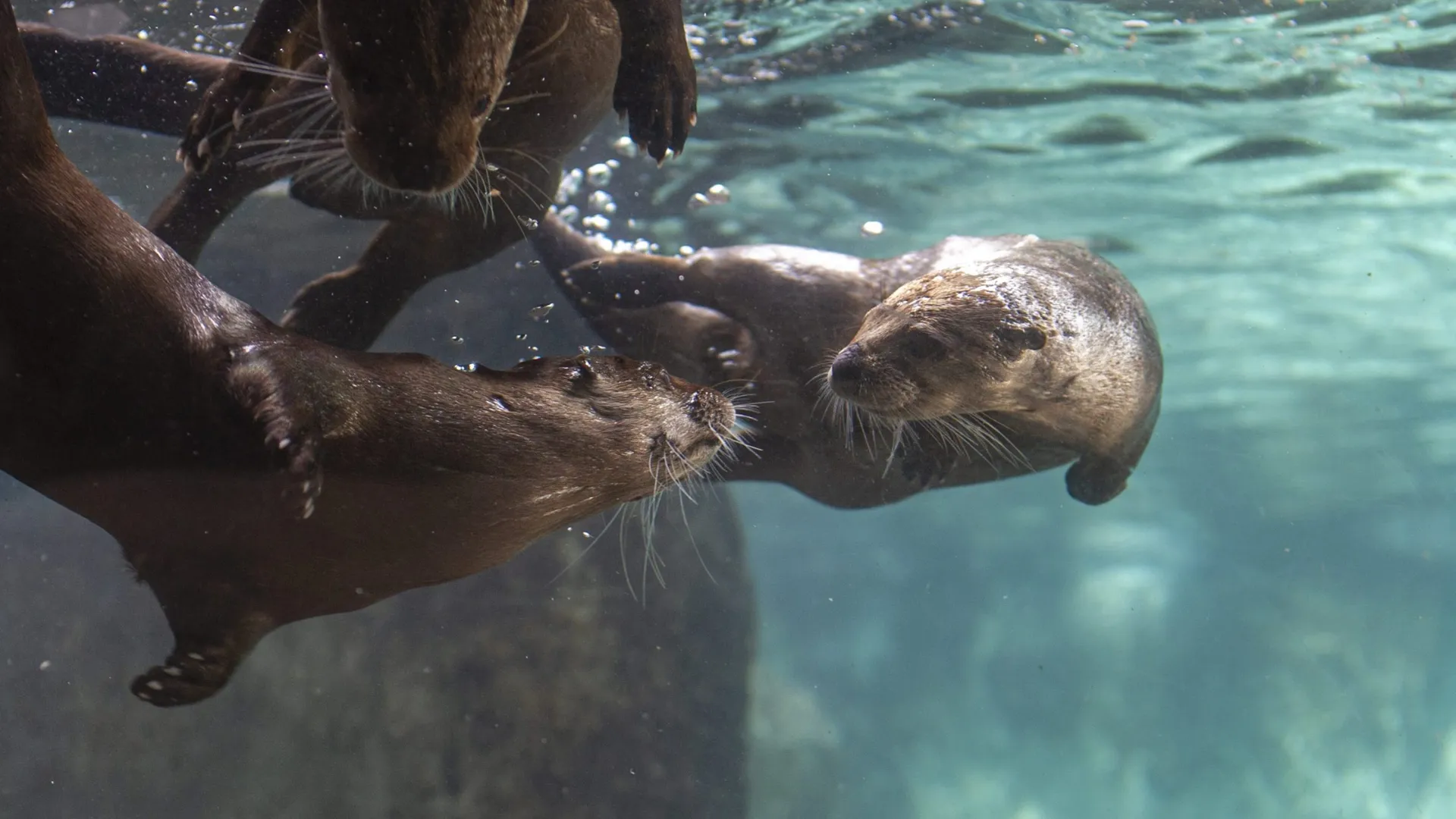 This February, Delmar, the elder states-otter in River Otter Falls, turned 16. Several other otters in the Aquarium’s romp lack an officially recorded birthdate but are estimated to be between 12 and 20 years old.