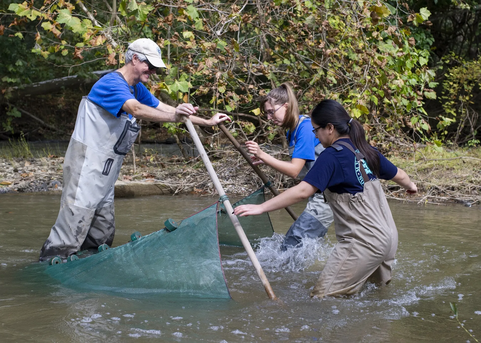 Under pristine blue skies, a team of freshwater specialists from the Conservation Institute waded into South Chickamauga Creek to bring back about two dozen Common Logperch to their propagation facility near downtown Chattanooga. Less than an hour later, they more than met their quota, the fine-meshed seine net having collected about 30 Logperch in addition to a host of crayfish, insect nymphs and wriggling masses of Mountain Madtoms, Warpaint Shiners, Stonerollers and other fish species.