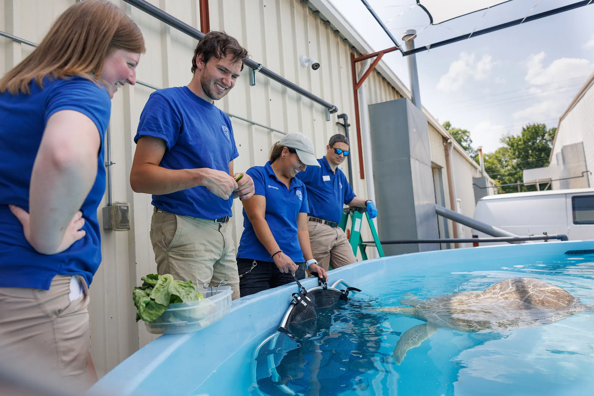To help address Oscar’s mobility problems, the Aquarium pursued diagnostic tools, including traveling for a CT scan at an area hospital. He also underwent exploratory diagnostic surgery conducted by Dr. Shane Boylan, a sea turtle specialist who drove more than 400 miles to Chattanooga from the South Carolina Aquarium in Charleston.
