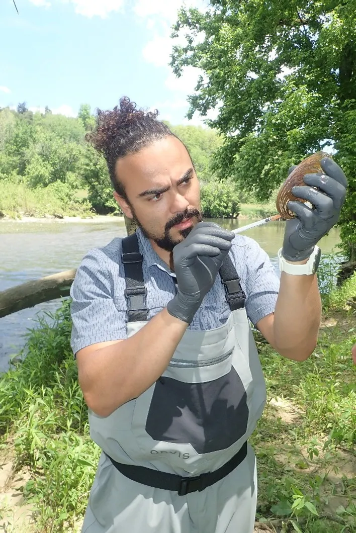 Dr. Jeronimo Silva’s work focuses on the ecology, conservation, and management of riverine habitats and aquatic fauna. His projects focus on applied science, integrating field and laboratory approaches to examine how environmental stressors influence species distribution and organismal health, and frequently involve rare, threatened, or federally endangered species. Dr. Silva collaborates with universities, non-profits, state and federal agencies, conservation practitioners, and private landowners. His work bridges topics such as species distribution, landscape ecology, and conservation genetics, as well as areas within conservation medicine and One Health, including host–pathogen dynamics, disease ecology, and epidemiology. Freshwater mussels, amphibians, reptiles, fish, and the ecosystems they inhabit are his primary study systems.